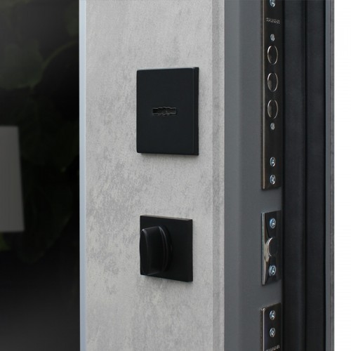 Ручка, ночная задвижка, глазок на квадратной розетке. Цвет «черная». Смотрите также: ДВЕРНЫЕ ГАДЖЕТЫ