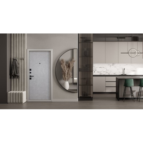 Представляем новинку от «АСД» ― модель «Дуэт Б», сочетающую новые дизайнерские решения и наш многолетний опыт производства стальных дверей. Наружный лист (1,5 мм) отделан панелью МДФ в строгом цвете «бетон темный», внутреннее полотно отделано экошпоном в элегантном цвете «бетон светлый». Безопасность модели обеспечивают два замка «Гардиан» и стальная броненакладка. Благодаря качественному утеплению «Дуэт Б» не только защитит ваш дом от недоброжелательных гостей, но и сделает его более комфортным.