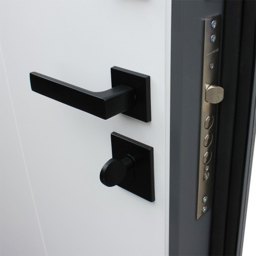 Ручка, ночная задвижка, глазок на квадратной розетке. Цвет «черная». Смотрите также: ДВЕРНЫЕ ГАДЖЕТЫ