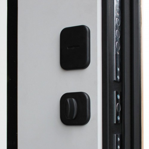 Ручка, ночная задвижка, глазок на квадратной розетке. Цвет фурнитуры «черный». Смотрите также: ДВЕРНЫЕ ГАДЖЕТЫ
