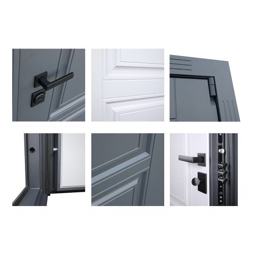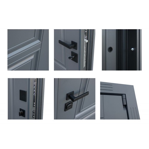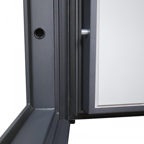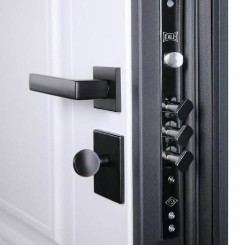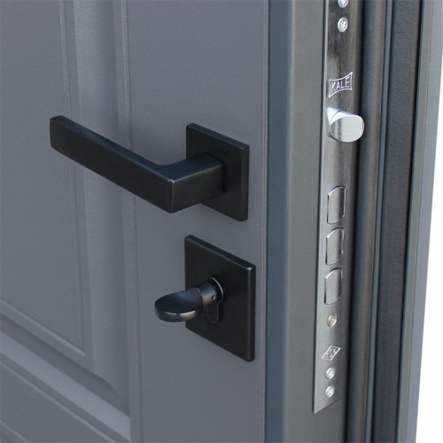 Лист металла 1 мм под внутренней панелью. Евроцилиндр К-В (перфокарта). Броненакладка врезная. Штырь противосъемный (3 шт.).