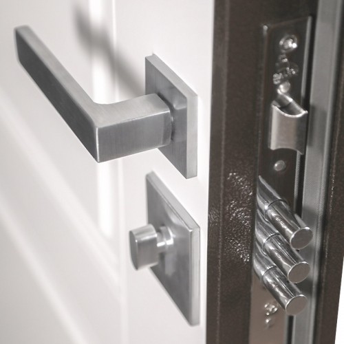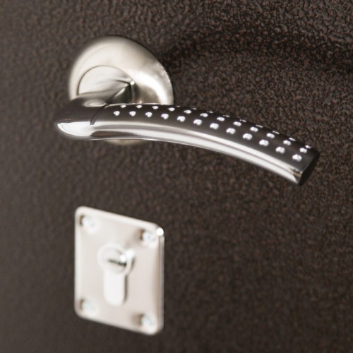 Ручка, глазок на квадратной розетке. Цвет фурнитуры "хром". Смотрите также: ДВЕРНЫЕ ГАДЖЕТЫ