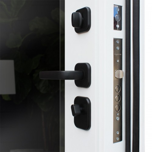 Ручка, ночная задвижка, глазок на квадратной розетке. Цвет «черный».Смотрите также: ДВЕРНЫЕ ГАДЖЕТЫ
