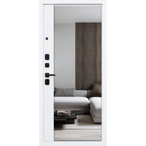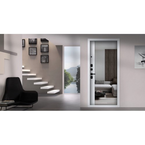 Представляем новинку от «АСД» ― модель «Ливерпуль с зеркалом», сочетающую новые дизайнерские решения и наш многолетний опыт производства стальных дверей. Наружный лист (1,5 мм) отделан панелью МДФ в строгом цвете «белый матовый» со вставкой черная лакобель, внутреннее полотно отделано БОЛЬШИМ ЗЕРКАЛОМ С ФАЦЕТОМ , с вставкой в замковой части экошпоном в элегантном цвете «белый матовый». Безопасность модели обеспечивают два замка «Гардиан» и стальная броненакладка. Благодаря качественному утеплению «Ливерпуль» не только защитит ваш дом от недоброжелательных гостей, но и сделает его более комфортным.