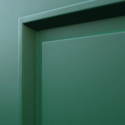 Два цвета покраски рамы и полотна: внешняя сторона - "муар зеленый", внутренняя сторона - "муар серый". Два слоя покрытия: первый слой - цинкогрунт, второй слой – порошковое покрытие