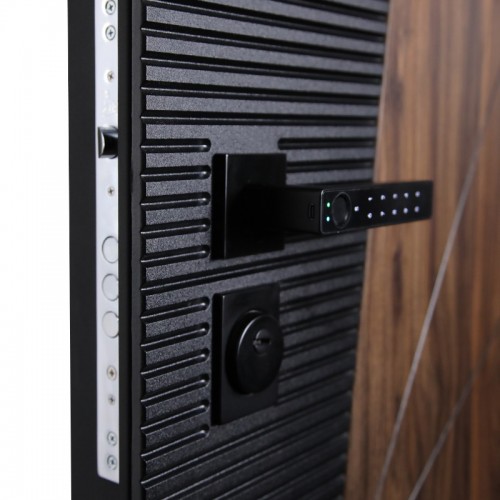 Установлена биометрическая дверная ручка Smart lock T888. Замковая часть адаптирована под замену на биометрический врезной замок Smart lock DZ 888 (замок покупается отдельно). Также можно произвести замену на биометрические замки моделей Smart lock Y12 или Smart lock Y23 (биометрический замок покупается отдельно в комплекте с механическим замком Galeon 809 (цилиндровый).