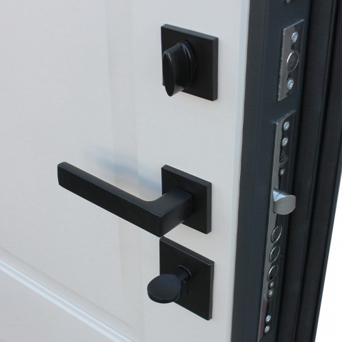 Ручка, ночная задвижка, глазок на квадратной розетке. Цвет фурнитуры «черный». Смотрите также: ДВЕРНЫЕ ГАДЖЕТЫ