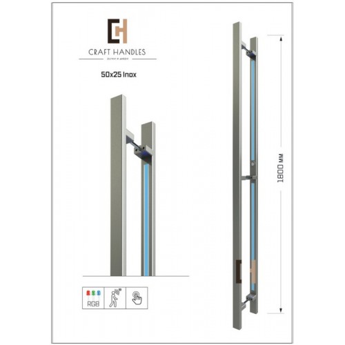 Art. 50х25 Inox изготовлена из стального нержавеющего профиля сечением 50х25, с толщиной стенки 1,5 мм поверхность шлифованная .В зависимости от задач, изделие комплектуется дополнительными устройствами освещения, питания, контроля доступа.. ОписаниеКомплектация Premium:. . Ручка 2 шт + сквозное крепление. Кнопки входа/выхода. Led подсветка RGB с наружной стороны. Блок питания 12 Вт. RGB контроллер с ДУ пультом управления. Датчик движения. . ХарактеристикиТип товара Нержавеющая сталь