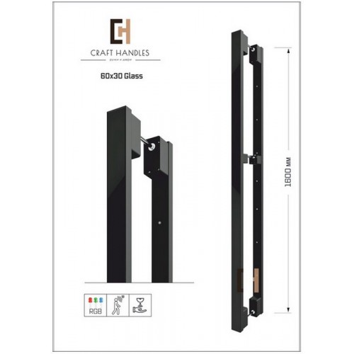 Изготовлена из стали толщиной 1,5 мм с полимерным покрытием + грунт AkzoNobel. В качестве декора лицевая сторона ручки имеет вставку из влагостойкой фанеры с вклеенным стеклом чёрного цвета. В зависимости от задач, изделие комплектуется дополнительными устройствами освещения, питания, контроля доступа.. ОписаниеКомплектация:. . Ручка 2 шт + сквозное крепление. Сенсоры для входа/выхода. Led подсветка RGB с наружной стороны. Блок питания 12 Вт. RGB контроллер с ДУ пультом (возможность изменения цвета и режима подсветки). Датчик движения для "приветственного света". Транспортный кофр. . ХарактеристикиТип товара Вставка из стекла