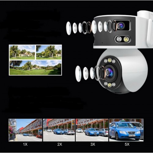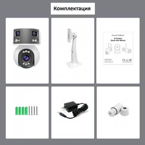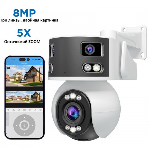Основные характеристики:Новый интеллектуальный процессор с интегрированным механизмом обработки искусственного интеллекта.* Датчики: 1 x 4 млн пикселей HD Starlight и 2 x 2 млн пикселей Starlight.* Объективы: купольная камера: 2,8~12 мм с 5-кратным оптическим зумом; цилиндрическая камера: 2 x 3,6 мм, F1.6 Starlight.* Видео: 1 канал PTZ с поддержкой оптического зума и отслеживания человека; 1 канал с ультрашироким углом обзора (170 градусов по горизонтали).* Ночное видение: поддержка двойного источника света, полноцветного и Starlight ночного видения.* Аудио: двусторонняя связь, встроенный микрофон и динамик для мониторинга и интеркома. * Тревога: поддержка сирены.* Хранение: поддержка TF-карт до 256 ГБ (не входит в комплект), запись и воспроизведение с мобильного телефона.* AI-интеллект: распознавание человека, модели автомобиля, лица, огня, отслеживание человека.Дополнительные характеристики:* Формат сжатия: H.265 * Угол обзора: зум-объектив: 30-110 градусов по горизонтали, 58 градусов по вертикали; сшивающий объектив: 170 градусов по горизонтали, 50 градусов по вертикали.* Разрешение видео: купольная камера: (2560x1440) 1440P, (640x360) VGA; цилиндрическая камера: (3860x1080) 1080P, (1280x360) VGA; 15 кадров в секунду.* PTZ: поворот по горизонтали на 330 градусов / по вертикали на 90 градусов, поддержка отслеживания человека.* Водонепроницаемость: IP66* Питание: AC100-240V, выход DC12V/1AПриложение:SriHome – полностью на Русском языке. Простейшая регистрация. Подходит для Ios/Android.Качественная и стабильная работа. Огромное количество возможностей настроек и управления.