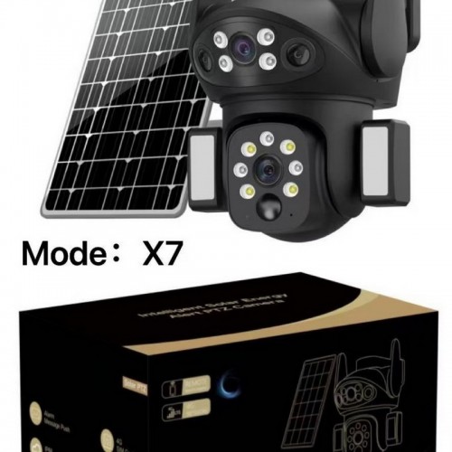 Уличная беспроводная 4G камера X7 идеально подходит для слежения за домом и двором. Благодаря диодной и светодиодной подсветкам, камера превосходно видит в темноте, реагирует на движения, распознает людей в кадре, обладает возможностью записывать и передавать голос.. Две мощные антенны помогают стабильно удерживать сигнал.. Запись может делаться как на mSd карту от 8 - 128Гб, так и непосредственно в облако - это обезопасит вас, если нарушитель попробует причинить вред камере или демонтировать ее (услуга платная). Так же информация сохраняется на вашем устройстве в приложении.. Благодаря современным технологиям, вы сможете управлять камерой и просматривать записи из любой точки мира через смартфон и планшет через приложение V380 PRO.. Камера работает от солнечной батареи 5 ватт, встроенной батареи 8000мАч, что позволит камере продолжать работать даже если будут перебои с электричеством и от сети на прямую через адаптер 5V/2A.. Повышенная функциональность камеры обеспечивает владельца рядом преимуществ, по сравнению с аналогами.. Особенности камеры:. Верхняя две камера угла обзора горизонталь 55*, вертикаль 40*. Широкоугольный объектив 2,5мм/120*. 4G - (Мегафон, МТС, Т2, Билайн). Вторая камера с поворотным механизмом PTZ, объектив 6мм-12мм, 10-кратный гибридный зум. Горизонтальный поворот на 355*, вертикальный на 90*. Солнечная панель мощностью 5 Вт с удлинителем длиной 2 м, встроенными батареями емкостью 8000мАч. Двусторонний голосовой интерком. Облачное хранилище и TF-карта для хранения максимум 128 Гб (TF-карта в комплект не входит). Поддержка удаленного просмотра / воспроизведения приложений Android, IOS (приложение: V380 PRO). PIR + обнаружение людей - видеозапись пробуждения и отправка сообщения до 12м.. 24-часовая запись, 24 часа + триггерная запись, триггерная запись в трех режимах работы. Конструкция с двойным источником света, полноцветное расстояние ночного видения 10 метров, инфракрасное расстояние ночного видения 30 метров. Разрешение видео: 1920*2160. Автоматическое отслеживание людей. Класс водонепроницаемости IP66. Рабочая температура: -30~50°C