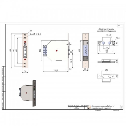 Для обеспечения надёжного ввода электропитания в конструкцию входной двери рекомендуем использовать коммутационный блок в составе с контактной группой или гибким кабелепереходом (по Вашему выбору и в зависимости от состава системы СКУД).С 1.04.2024 контроллер LED подсветки RGB не будет размещаться в "теле" ручки скобы, а будет вынесен в коммутационный блок.. Для заказов с LED подсветкой без RGB контроллера и коммутационного блока будет доступен только один цветовой вариант по Вашему выбору. Просим учитывать данные изменения при проектировании дверей, приёме заказов и консультациях заказчиков.. Состав комплекта:. . металлический корпус. контактная группа. датчик движения Доплера. . ОписаниеКоммутационной блок обеспечивает свободный доступ ко всем устройствам без демонтажа двери и ручки, что в разы облегчает сервисное обслуживание, гарантийный и постгарантийный ремонт. Монтируется в торцевой части дверного полотна и коробки.. Контактная группа представляет собой контактную пару с подпружиненными клеммами и набором нейлоновых прокладок и служит для обеспечения надежной коммутации управляющих контактов во время закрытия двери.. Датчик Доплера необходим для включения "приветственного света" LED подсветки на ручке. Способен определять движение объектов (препятствий) которые полностью или частично отражают радиоволны (люди, животные, металлы и т.д.), даже если они находятся за деревом (дверью), стеной (гипс, бетон), пластиками, стеклами и т.д.. В основу работы датчика заложен эффект Доплера - изменение частоты отражённой волны, вследствие движения излучателя, приёмника или отражателя. В данном модуле частота излучаемой им радиоволны меняется вследствие движения отражателя (препятствия). Модуль построен на базе чипа, который оснащён передатчиком и приёмником. Датчик сработает если приёмник примет сигнал, частота которого незначительно отличается от частоты сигнала передатчика.. Особенностью установки данного датчика является необходимость наличия в внешнем металлическом полотне двери смотрового окна размером 50*20 мм для осуществления прохода радиосигнала, т.к. данный датчик не способен пропускать волны через металл. Поэтому из-за этой особенности подразумевается использование данного устройства с дверьми, в комплектации которых имеется внешняя декоративная МДФ панель, которая бы закрывала вырез..
