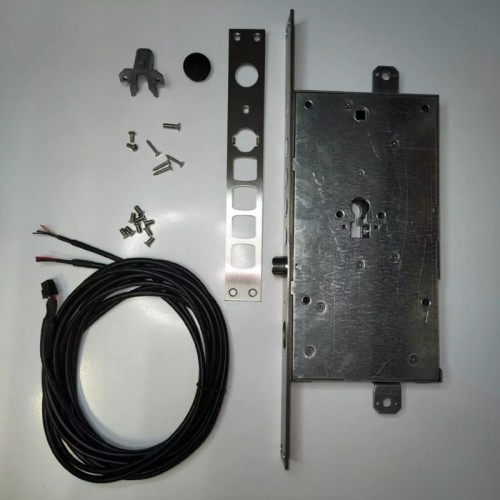 . односистемный цилиндровый замок. три точки запирания. корпус из легированной стали. секретность зависит от цилиндра. 4 ригеля плюс защелка. есть возможность установки нажимной ручки. . Совместим с биометрией Dircode, в этом случае есть возможность:. . сканирование отпечатка пальца. использование цифрового пароля. применение RFID-карт/брелков. ВОЗМОЖНОСТЬ УПРАВЛЕНИЯ ИЗ ЛЮБОЙ ТОЧКИ МИРА ПО WIFI, создание временных паролей на любой период времени.. Автоматическое закрытие или вручную.. . ОписаниеКомплектация:. Моторизированный замок DM-1. . Ответная планка. Магнит для геркона (геркон встроен в замок). Провод для подключения питания а так же сторонних систем для управления замком. Крепежные элементы. . Размеры врезной части (ШхВхТ): 138х410х32 мм