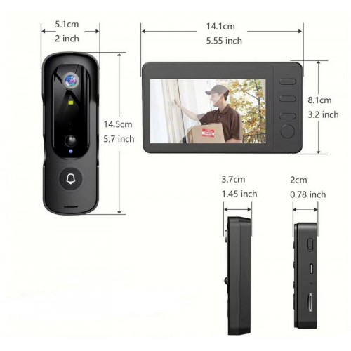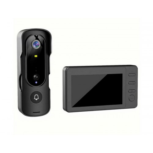 Особенности:- Монитор и вызывная панель работают по радиосвязи- Двусторонняя голосовая связь- Ночной режим (диодный)- Режим видео- Датчик движения (регулируемый - высокая/средняя/низкая чувствительности)- Дверной звонок ( 4 мелодии )- Меню русскоязычное- Для улицы и помещения- Рабочее расстояние зависит от преград (примерно до 20м). Необходимо проверять на месте! Вызывная панель:Цвет - ЧёрныйКамера - 2мрУгол обзора - 110*Аккумулятор - 2 х 1800mAhВремя зарядки - до 6чНеобходимый блок питания для зарядки - DC5V/2AВозможность крепления - двусторонний скотч/ саморезыМеста эксплуатации - Помещение/УлицаЗащита - IP55Размеры - 145х51х37мм Монитор:Цвет - ЧёрныйДиагональ - 4,3"Дисплей - цветнойРазрешение - 640х480Есть слот для карты памяти mSd - от 8 - 128 гб.Работает - от сети.Необходимый блок питания для зарядки - DC5V/2AВозможность крепления - двусторонний скотч/ саморезы/ подставкаМеста эксплуатации - ПомещениеРазмеры - 141х81х20мм Функции кнопок:- стрелки (переключение/ перелистывание/ выбор)- кнопка "М" - меню/ выход обратно- кнопка в с изображением трубки - просмотр улицы/ ответить/ подтвердить выбранное
