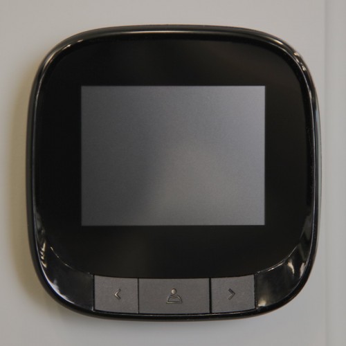 Маленький дисплей делает возможным установку видеоглазка на входную дверь со смещением отверстия в бок под глазок (двери с зеркалом)