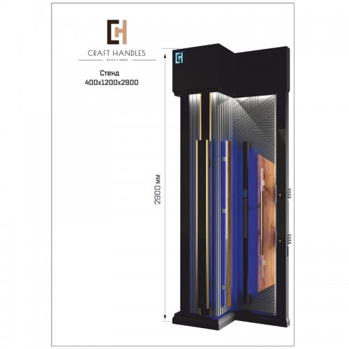 Выставочный стенд - торговое оборудование для демонстрации ассортимента и подбора опциональных возможностей систем СКУД в составе с ручками скобами различного дизайна и исполнения.. ОписаниеВыставочный стенд для размещения на торговой точке.. Преимущество данного стенда в том, что консультация покупателя происходит на фоне демонстрации систем контроля доступа в различных вариантах.. Помогает:. . выявляет действительные потребности будущего пользователя. не допускает ошибки при заказе. увеличивает продажи в сегменте. снижает риски. . Продавец консультант самостоятельно переключает типы СКУД нажатием клавиш "выбор режима".Данный стенд упрощает продажи подобных систем и самое главное снимает множество банальных вопросов.Базовый размер – 400х1200х3000ммКонструкция стенда выполнена из стали с отделкой декоративными панелями.Расположение - «спиной к стене».Данный стенд конструктивно может быть выполнен как отдельно стоящий элемент.Минимальное кол-во образцов ручек скоб- 4 шт. Состав:. Ручки:. . Арт 140х30 Glass Molding Premium+Nokey. Арт 60х30 Glass Premium+Dircode. Арт 70х35 Inox Oak Premium+Sensor. Арт 40х15 Oak Inox Basic. . Замки:. . Гардиан Alabay Latch - работа с модулем Nokey|Sensor. Mottura X-Nova - работа с биометрией Dircode. . Управление:. . DIRCODE – Биометрическая эл. система доступа с возможностью удалённого контроля.. NoKey – эл. система бесключевого доступа. Sensor – эл. бесконтактные сенсорные кнопки. . Дополнительно:. . Накладка для цилиндрового замка Armadillo Protector1USS CP Хром. Цилиндр К-В х 2 шт. Датчик движения встроен в корпус стенда. Блоки питания 12Вт для всех систем.