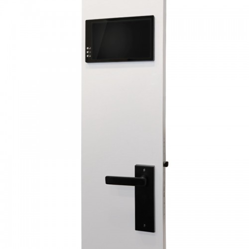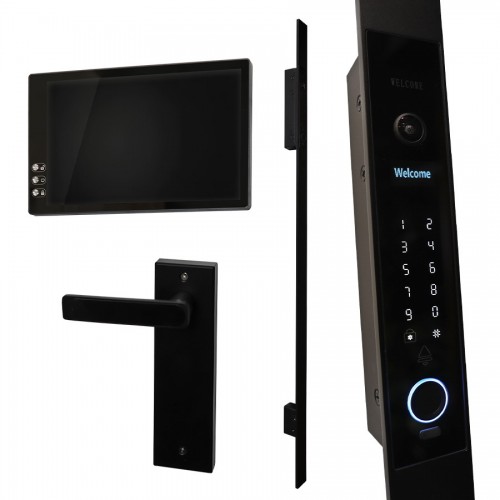 Способы разблокировки цифровой код, RF-карта, удаленно через приложение, отпечаток пальца, механический ключКоличество паролей Цифровой код, RF-карт, отпечатков пальцев 300 записейЗапорное устройство врезное, 3 ригеляРучка Снаружи – скоба, внутри - нажимнаяМатериал Высококачественный сплавТолщина полотна 45-110ммВлажность 45%-90%Температура -10ºС - +60ºСЦвет ЧерныйРазмеры Ручка-скоба L 1105*40,Размер экрана 250*155*10Размер внутренней ручки 230*65*20Внутренний монитор Цветной высокого разрешения 10”Питание Перезаряжаемый литиевый аккумуляторДополнительно мобильное приложение. .