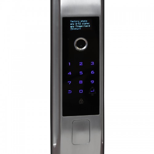 Представляем биометрический замок Smart Lock Silver — электронный замок, в основе работы которого лежит биометрическая аутентификация, то есть подтверждение прав доступа по биометрическим параметрам, в данном устройстве - по отпечаткам пальцев.Способы разблокировки цифровой код, RF-карта, отпечаток пальца, механический ключКоличество паролей Цифровой код, RF-карт, отпечатков пальцев 300Запорное устройство врезное, 3 ригеляРучка touchandgoМатериал алюминиевый сплавТолщина полотна 45-110ммВлажность 20%-90%Температура -25ºС - +60ºСЦвет серебряныйРазмеры 460*80*60Внутренний монитор нетПитание Li-on аккумулятор 1000 mAhДополнительно Внешний монитор 1,4”