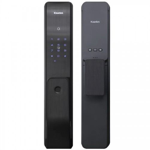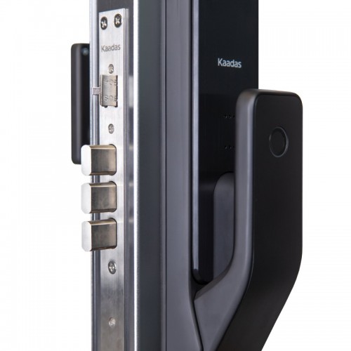 Основные характеристики:. . Тип замка: Врезной. Наличие ручки: С ручкой. Биометрия: Отпечаток пальца. Ручка: Touch & Go. Место установки: Для дома / Премиум-апартаменты. . ОписаниеЭлектронный замок Kaadas Q3 — новейшая модель от бренда Kaadas со встроенным дверным звонком. Теперь вам не потребуется установка дополнительного устройства для оповещения о приходе гостей. Необходимо коснуться значка дверного звонка над областью ввода кода, после чего замок прозвенит дважды. Этой уникальной функцией оснащены немногие замки на рынке в данном ценовом сегменте.. Благодаря интеллектуальным способам открытия вам больше не стоит беспокоиться о забытых ключах. Вы можете открыть замок при помощи отпечатка пальца, ПИН-кода и RF-карты. Механический ключ используется в аварийных случаях. . Использование шведской технологии Fingerprint Cards позволяет распознавать отпечатки пальцев с помощью 3 датчиков: температуры, емкости и давления, что полностью предотвращает их подделывание. Распознавание отпечатка происходит за 0,5 секунды. Независимо от того, в каком вы держите палец, отпечаток легко распознать. Эта технология применяется более чем в 135 банках по всему миру.. Важные функции безопасности Kaadas Q3:. . Защита от подбора кода: замок выводит до 32 случайных символов до и после реального кода, чтобы следы от пальцев на дисплее распределялись равномерно и оставались не только на тех цифрах, из которых состоит код доступа. Двойная аутентификация: комбинация нескольких способов открытия. Предупреждение о попытке взлома: замок активирует звуковую сигнализацию и временно отключит замок, если злоумышленник намеренно откроет замок или введет неправильный пароль более 5 раз. Кнопка блокировки изнутри делает невозможным открытие замка снаружи (кроме мастер-кода). Аккумуляторная батарея емкостью 4200 мАч обеспечивает экологичность использования. . Цилиндр является самой важной частью дверного замка. Kaadas оснастил Q3 цилиндром типа C — высший уровень сертификации дверных замков с точки зрения безопасности и долговечности.. Kaadas Q3 покоряет покупателей своим гармоничным дизайном и прочной конструкцией.. В покрытии замка использована технология IML для устойчивости к царапинам, износостойкости и простоты очистки во время использования.. Замок пригоден для установки на широкий размерный ряд дверей. Очень популярен в крупных проектах, таких как оснащение офисов и квартир в жилых комплексах.. Умный замок Kaadas Q3 с распознаванием отпечатков пальцев способен обеспечить максимальную безопасность в вашем помещении.. ХарактеристикиСторонность установки УниверсальныйPush-pull технология ДаСпособы открытия Отпечаток пальца / карта / пароль / ключЗапорное устройство ВрезноеКол-во отпечатков пальцев 100Кол-во паролей 21Кол-во RF-карт 100Мастер-пароль ДаКол-во цифр в пароле 6-12Толщина двери 38-120 ммМатериал Алюминиевый сплавВлажность 20-90% ОВЦвет ЧерныйТемпературный режим - 20 + 60 СРазмеры (ШxВxГ) 406*74*31 ммГолосовое сопровождение ДаАварийное питание 5V Type-CПитание DC 7.4V, Li-ion 4200мАчТипы двери Металлические, деревянныеТип карты RFID, Mifare 13,56 MhzТип сканера отпечатков пальцев Полупроводниковый